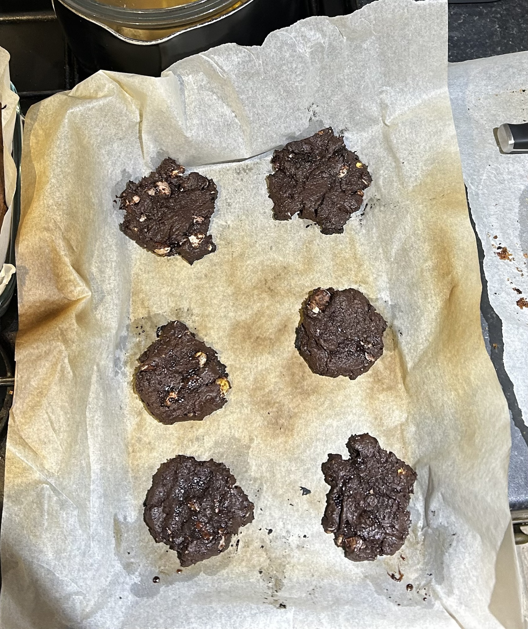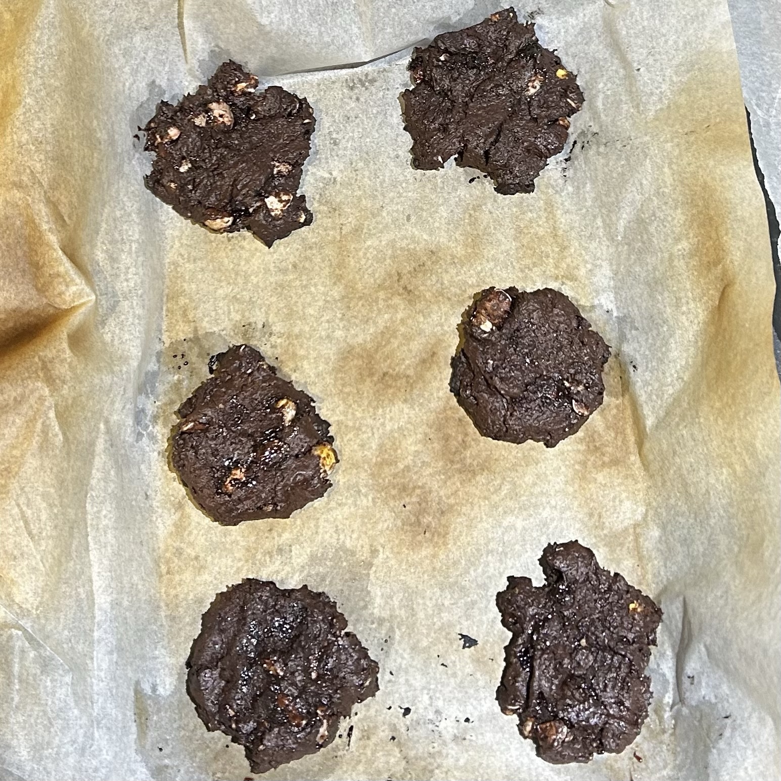 - Place 10 spoonfuls of the mixture onto the baking tray, flatten them slightly.