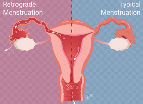 - Your body usually absorbs retrograde menstruation, meaning your immune system breaks down the blood and cells in your pelvis. However, sometimes endometrial tissue can attach outside the uterus, possibly causing pain or leading to endometriosis.